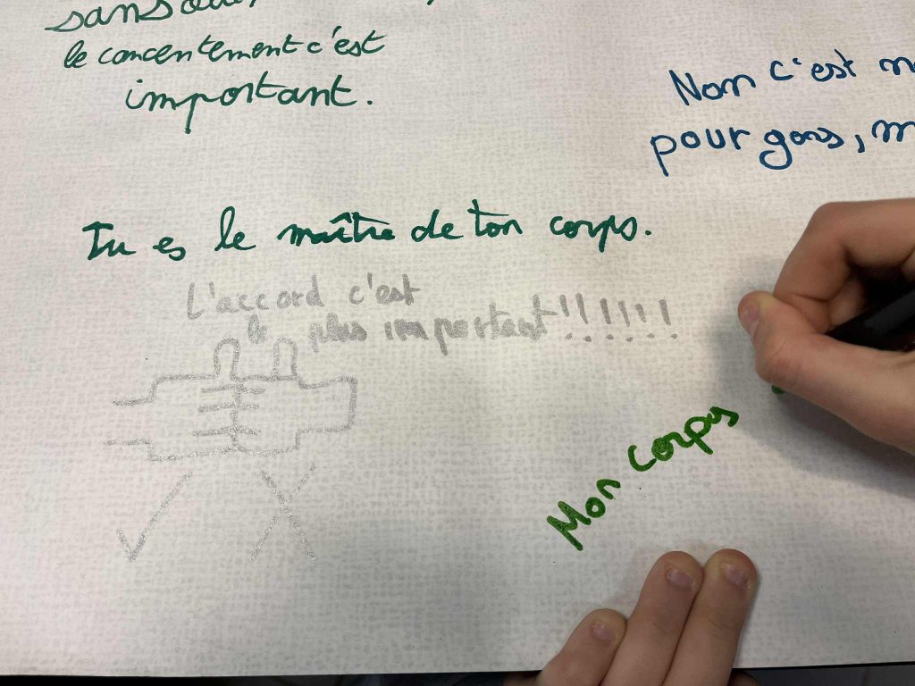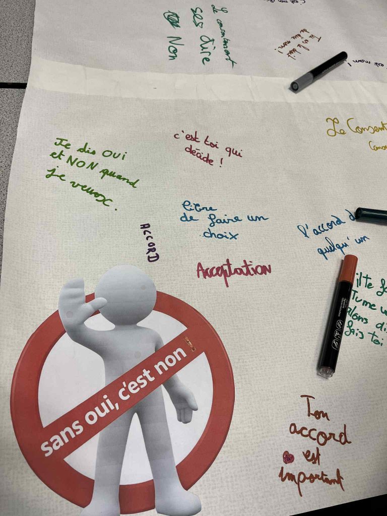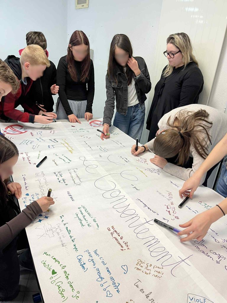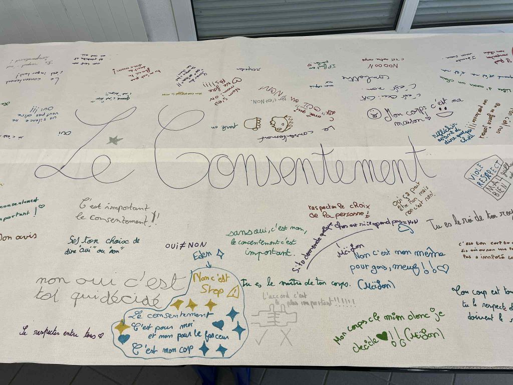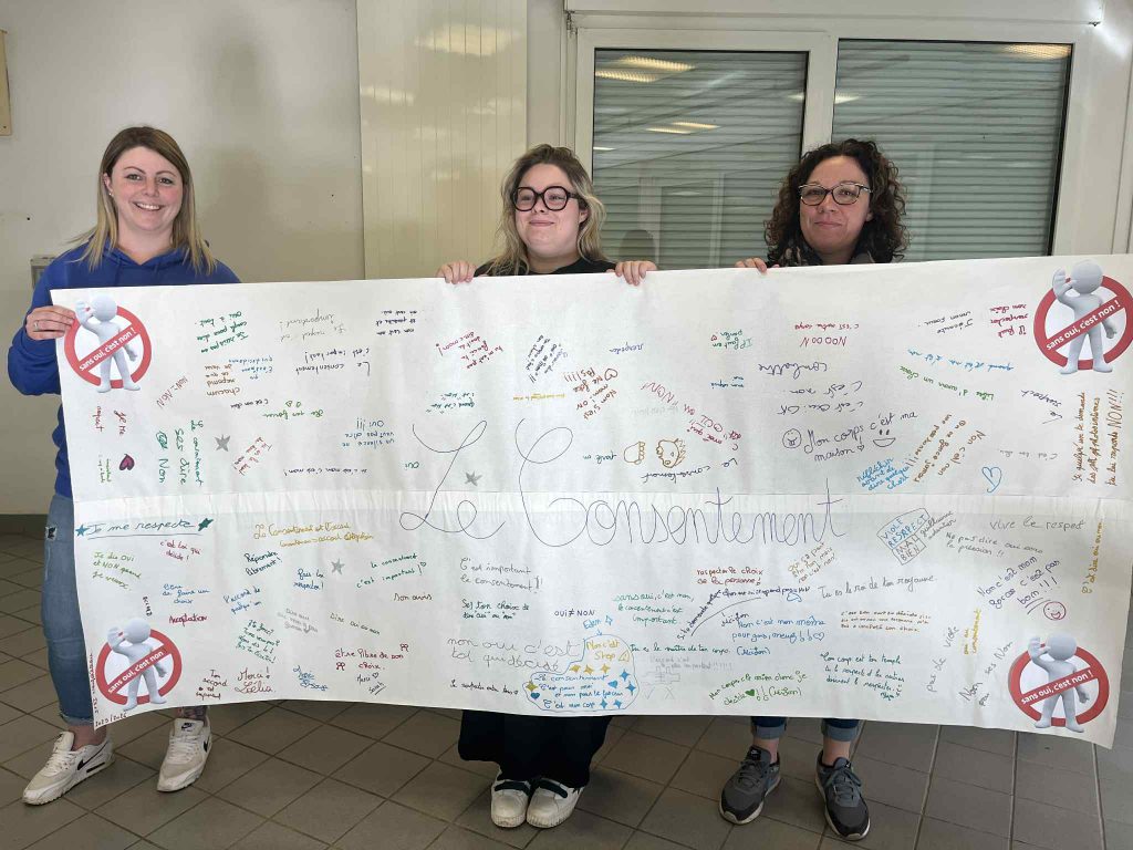 Dans le cadre de leur formation, trois étudiantes infirmières en deuxième année sont intervenues pendant trois semaines au collège. Elles ont proposé une action de prévention autour du consentement à destination des élèves de 5ᵉ.
